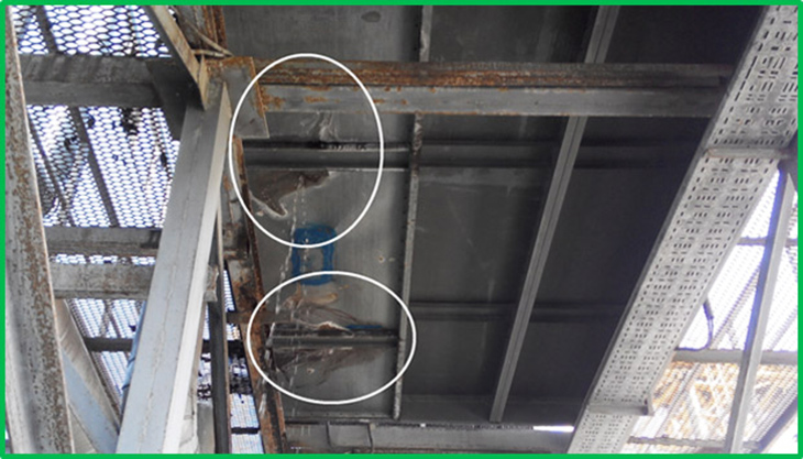 Элементы несущих балок и опорных конструкций подверглись сильной коррозии.