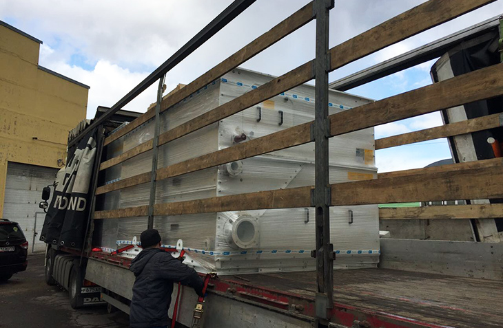 Произведена очередная поставка оросителя и водоуловителя нашего производства на замену вышедшего из строя оборудования градирни ГРАД. На этот раз продукция отправилась в г. Выборг.