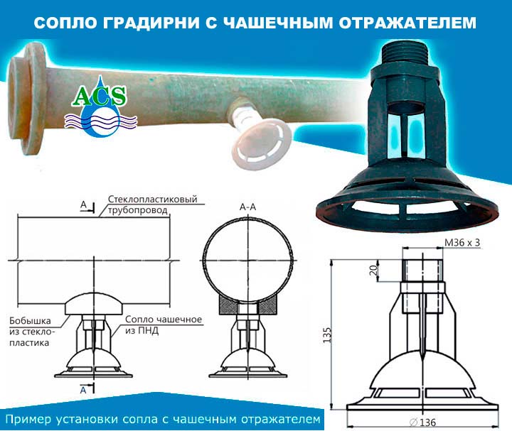 Легко монтируется на крышах насосных станций или над водосборными емкостями. Может быть оснащена стеклопластиковой или металлической ванной. В зимний период возможна установка жалюзи или зимнего водораспределения.