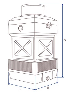 Звуковое давление: значения, относящиеся к измерениям в соответствии с ISO 3744, выполняются в свободном пространстве и при отсутствии фонового шума при средней гидравлической нагрузке. Уровень звукового давления на расстоянии от открытой градирни 15 м, измеренный на высоте 1,5 м над уровнем земли. Допуск по значениям +/- 2 дБА.